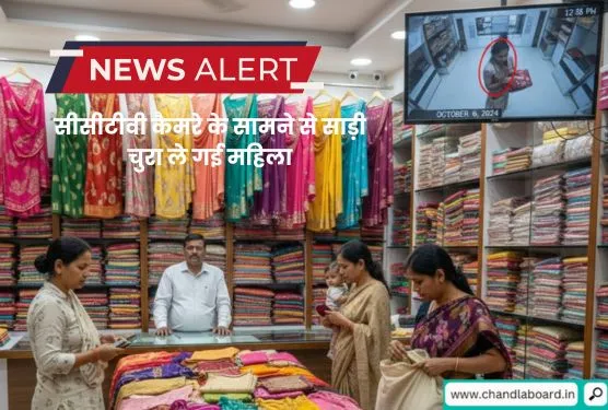 सीसीटीवी कैमरे के सामने से साड़ी चुरा ले गई महिला